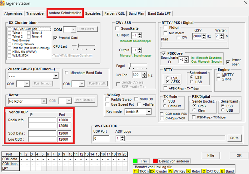 Im UCXLog unter Einstellungen -> Station -> Andere Schnittstellen